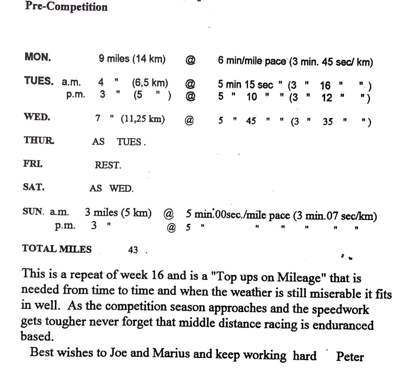 My own journey into this concept started when my results began stagnating between 1996 and 1998 when I was training for middle distances. During that period I had the father of Sebastian Coe, Peter Coe, coaching me. He had me focus on more intense training with elements of aerobic conditioning. At the same time, he had interesting elements of “blocking” that he would call “top-up-mileage” weeks that I responded better to.